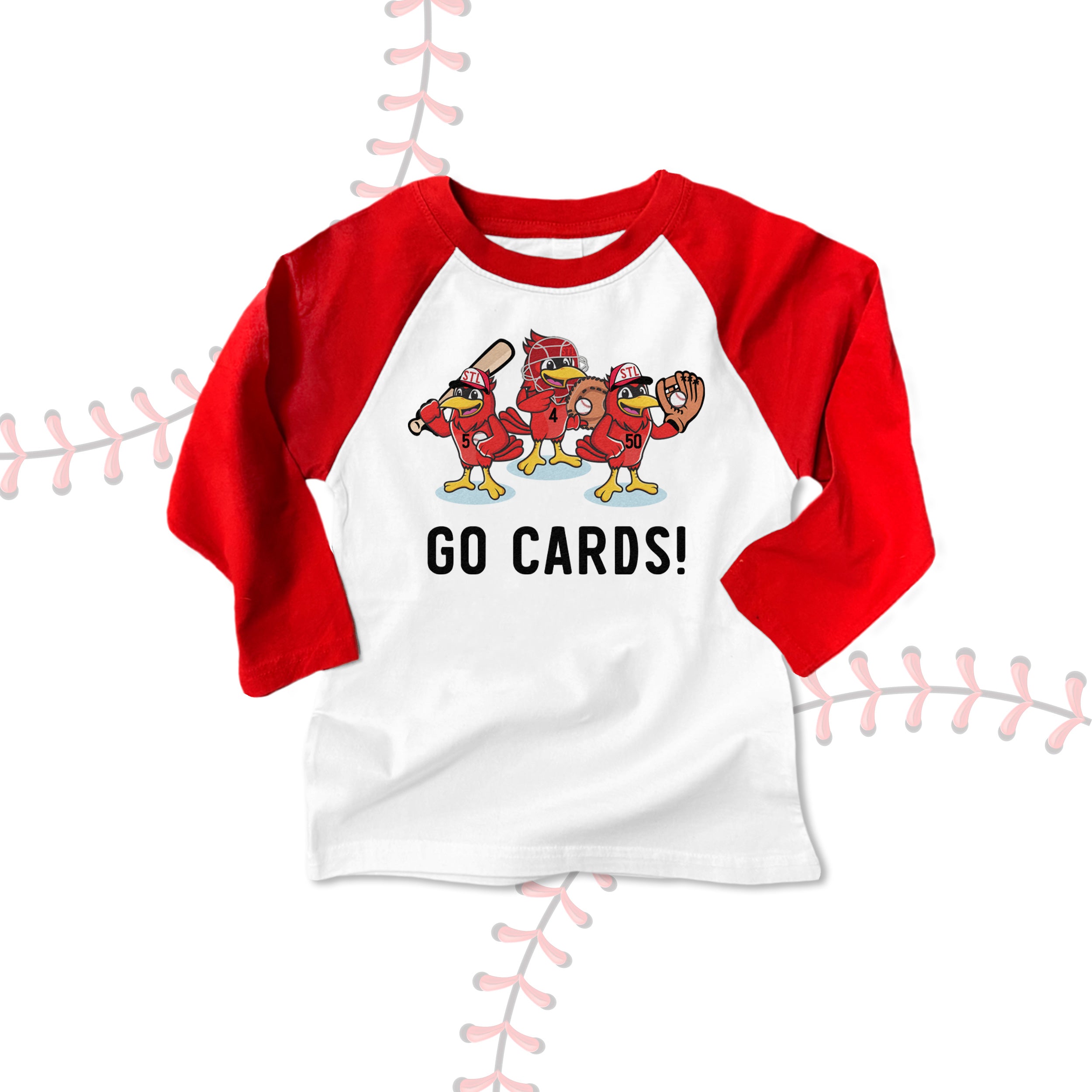 This adorable custom design was created by one of our talented Mash Pit designers and features three of our beloved birds ready to take the field! #5 Pujols, #4 Yadi and #50 Wainwright together again for what promises to be, if nothing else, a fun year watching baseball!