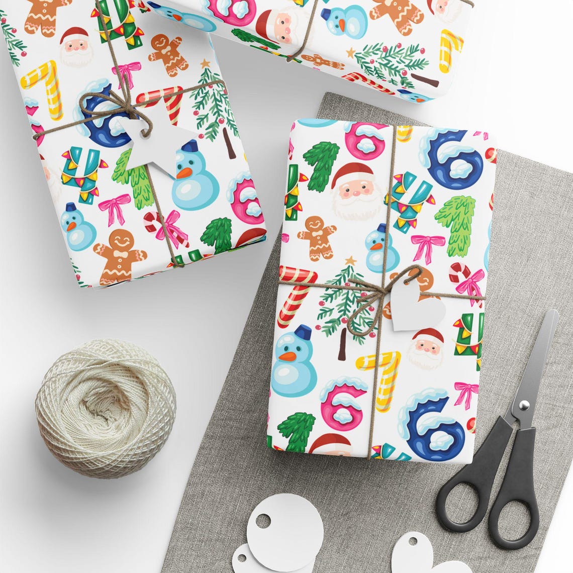 .: Please note: Wrapping paper includes white spaces at top and bottom edges with a bar and QR code