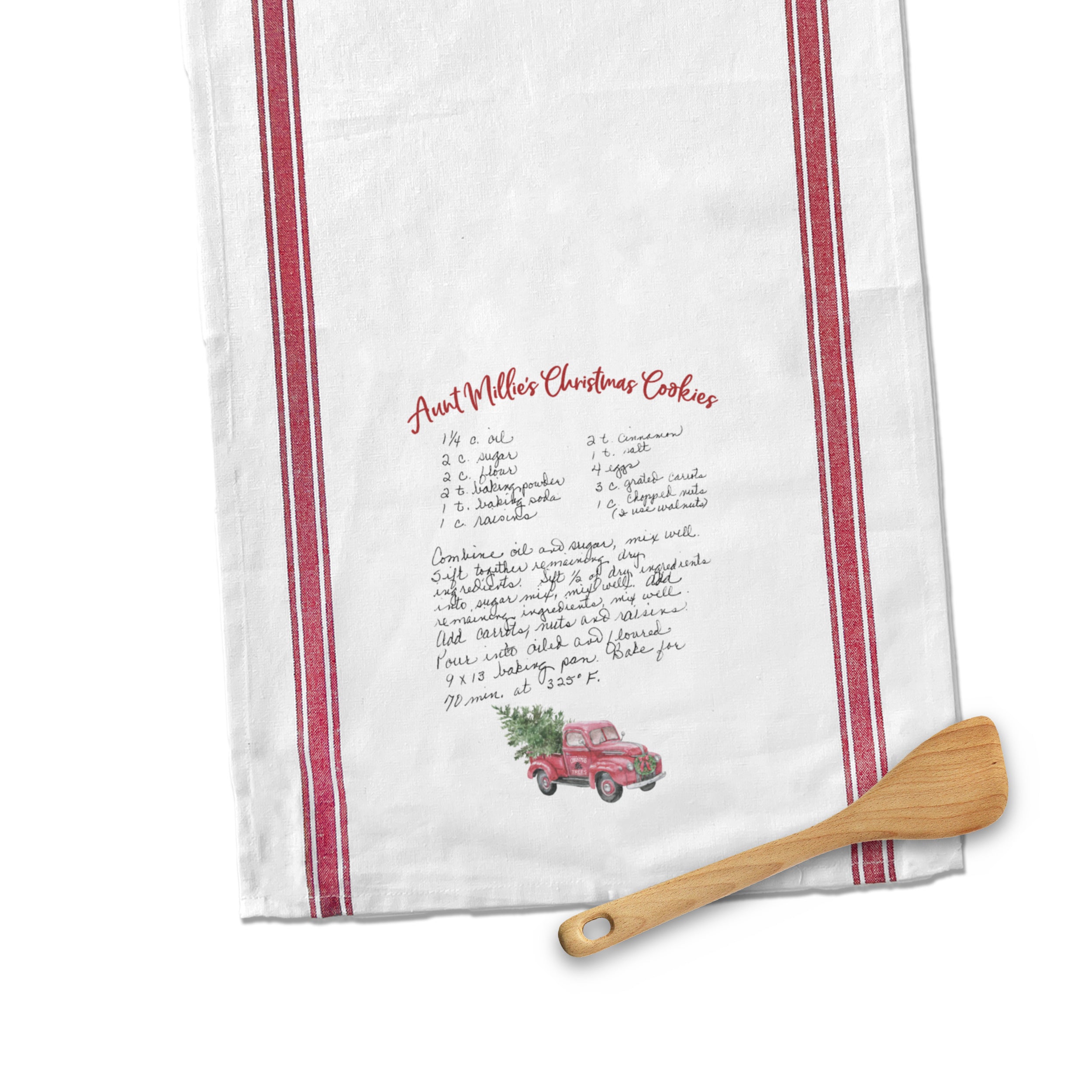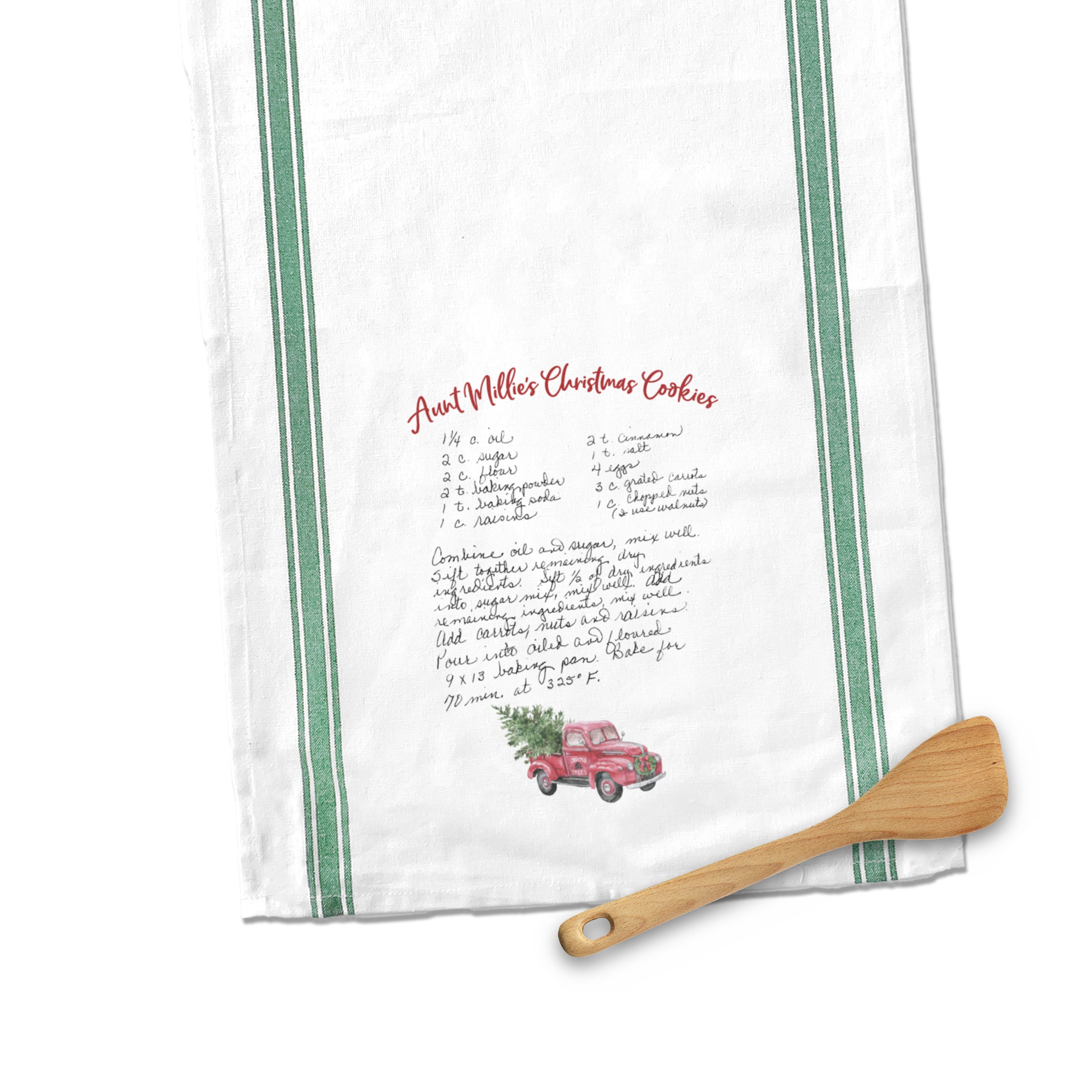 Christmas Recipe Striped Tea Towel