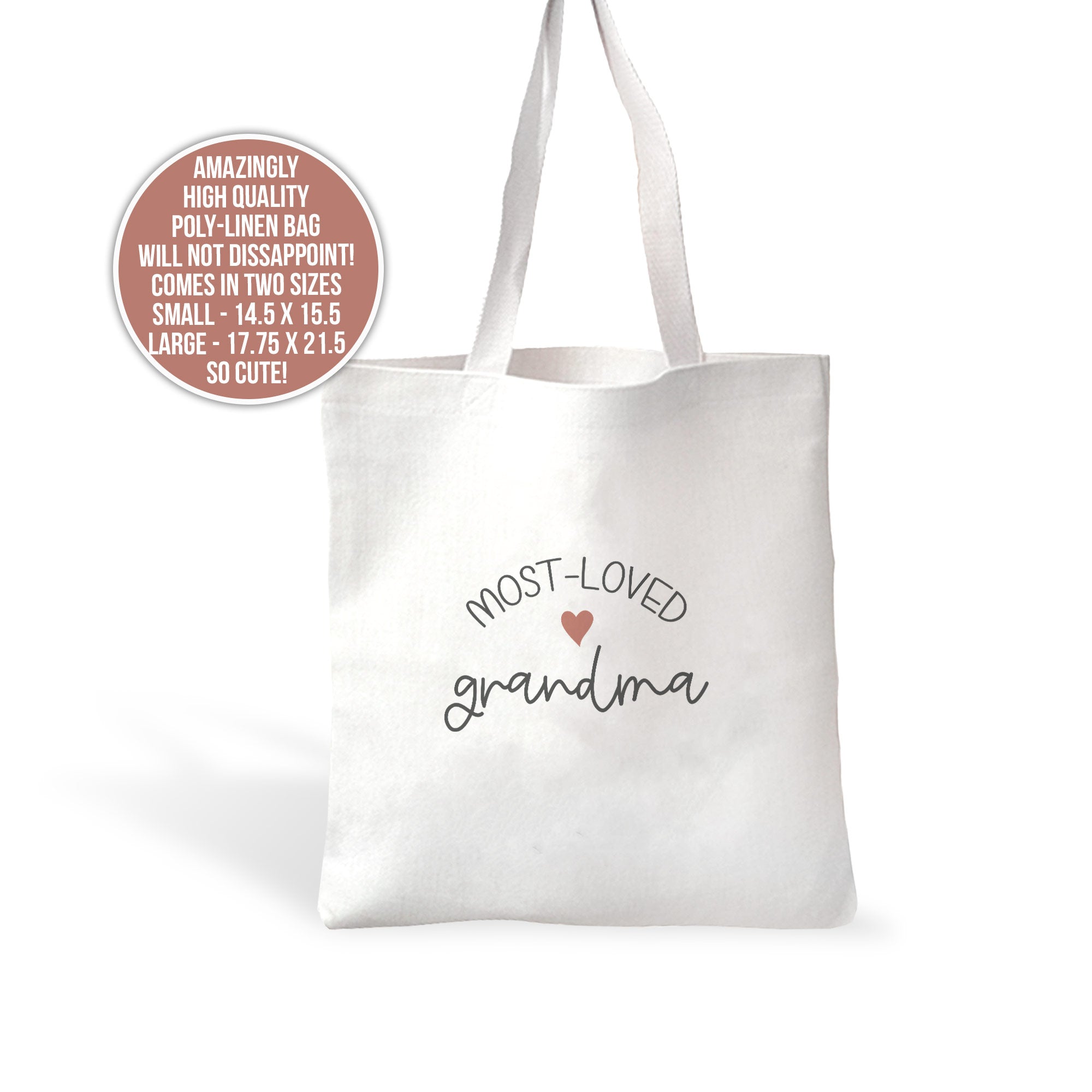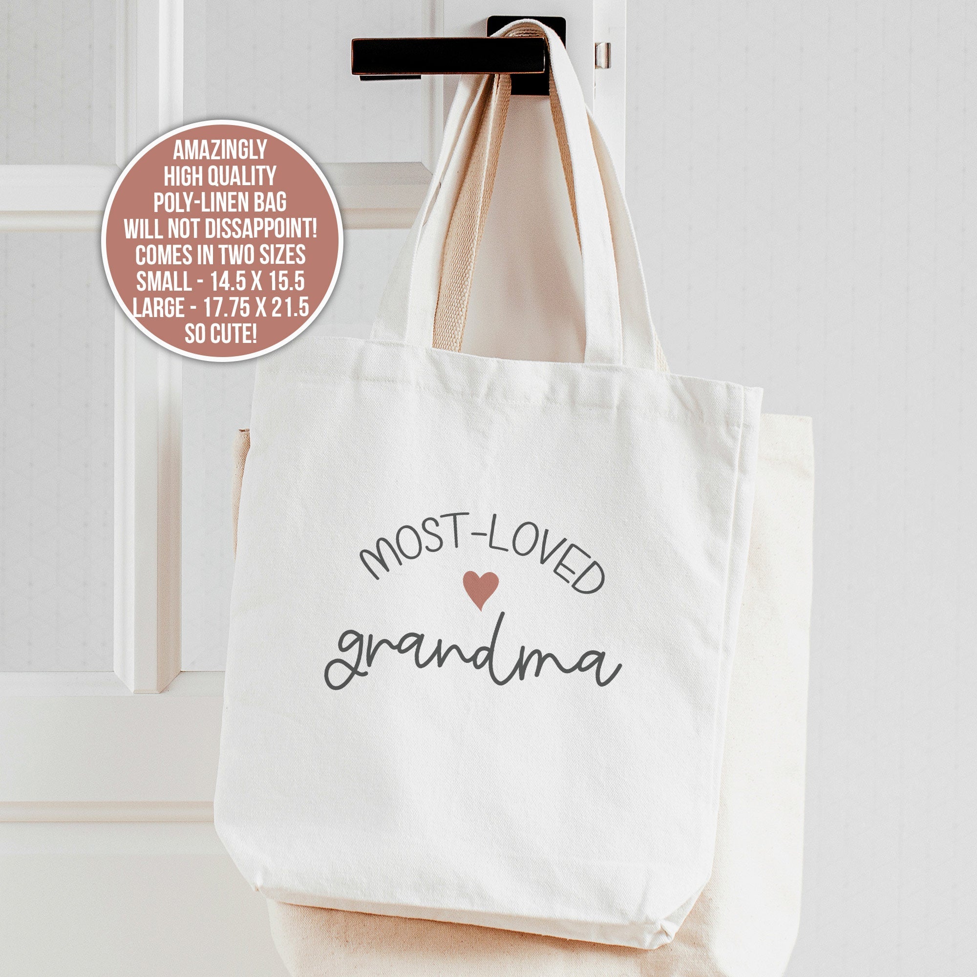 This sweet "Most-Loved grandma" linen textured tote bag will make the perfect Mother's Day gift for your Grandma! Awesome gift for birthdays or a special Valentine too!