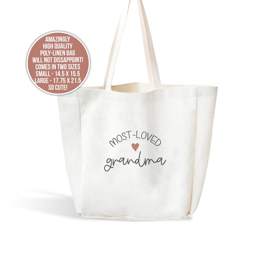 Grandma tote bag | most-loved grandma linen textured tote | sweet valentine, mothers day, or birthday gift