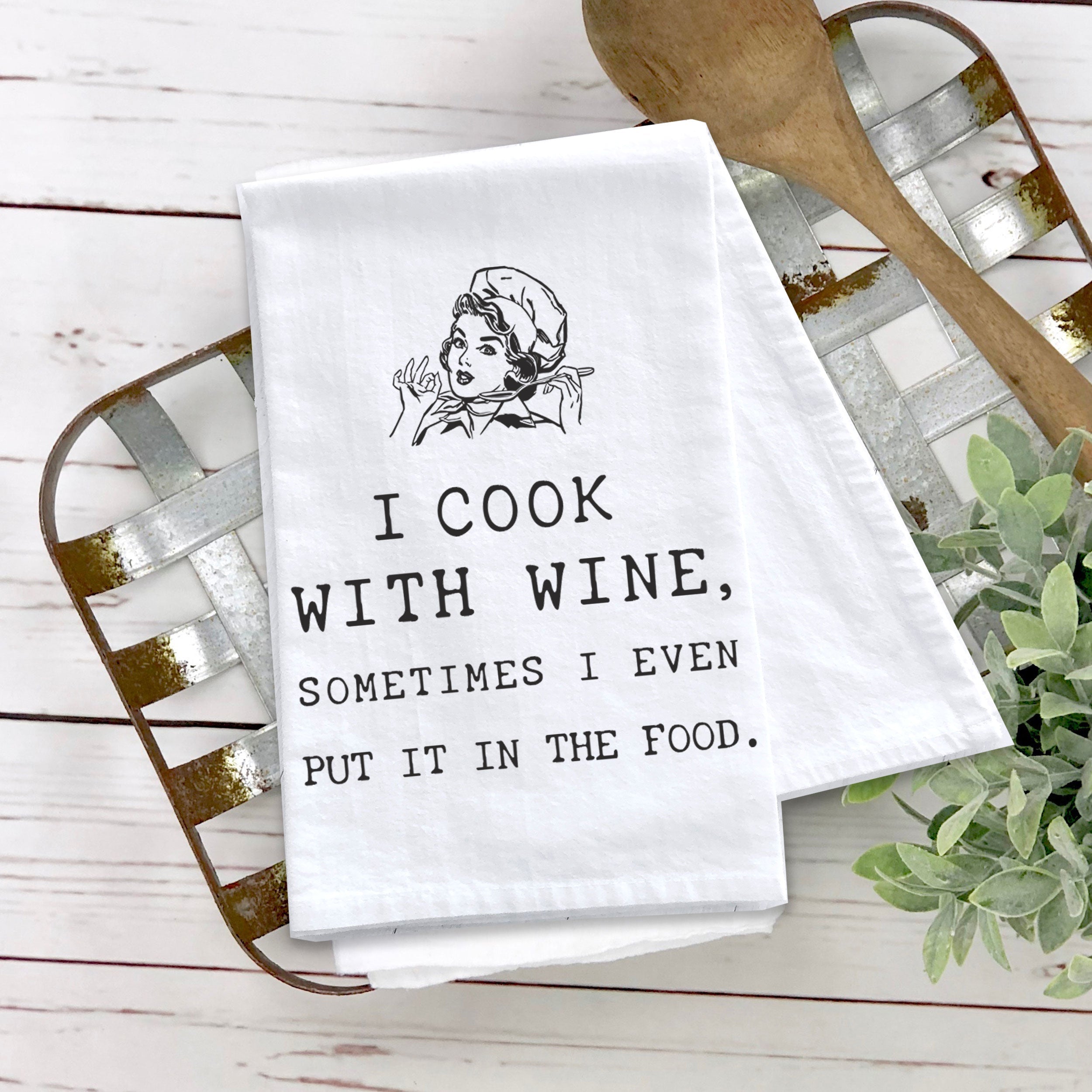 Tea towels are all the rage! We all have different ways of coping and this hilarious "I COOK WITH WINE" kitchen towel is perfect for me! Also makes a great Mother's Day, birthday or holiday gift for the wine loving mom or women in the family!