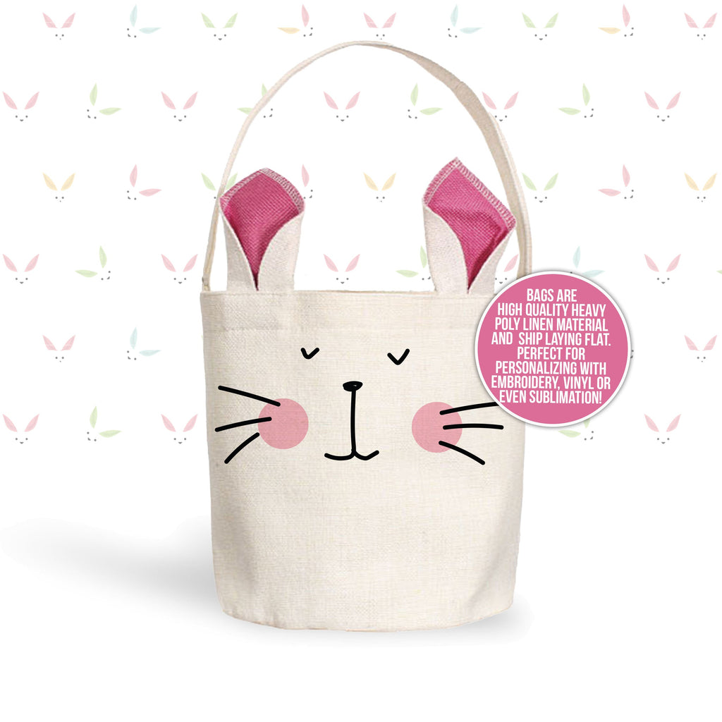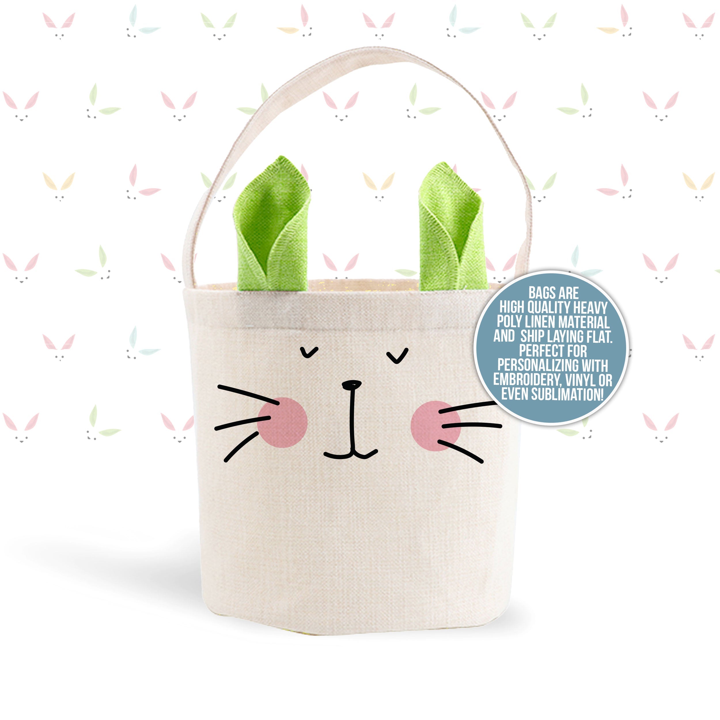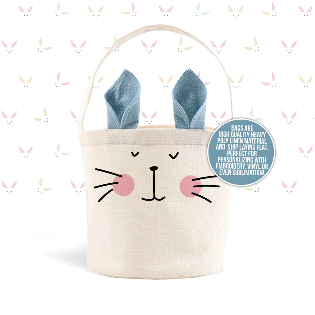 This adorable bunny bag Easter basket with adorable bunny ears makes a perfect first Easter gift or any age gift for your little man or little lady. You choose pink, blue, or green bunny ears! Please keep in mind, these are linen-type bags that do have a round bottom, but they are not super structured so you will need to add filler to them to ensure they stand up properly. Also, the handle will often fall over. They are adorable, but not a hard "basket".
