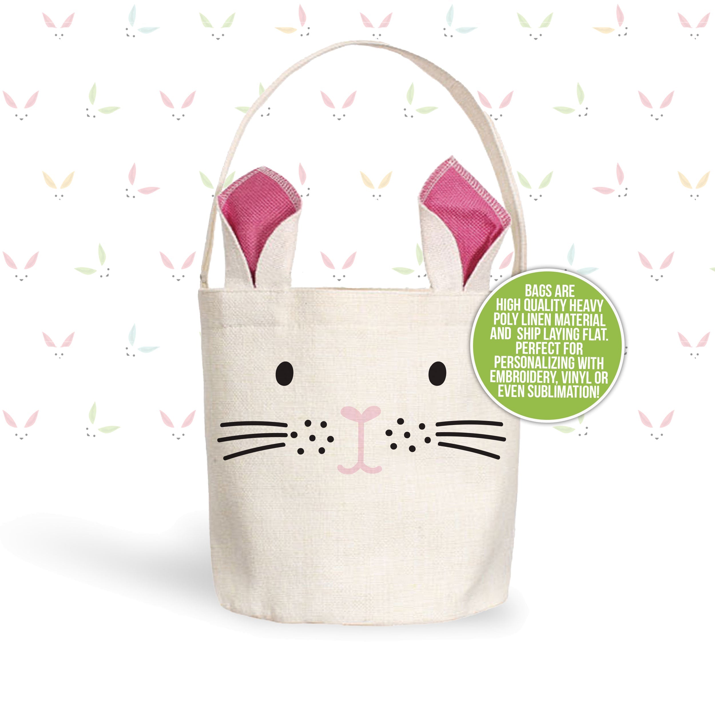 This adorable bunny bag Easter basket with adorable bunny ears makes a perfect first Easter gift or any age gift for your little man or little lady. You choose pink, blue, or green bunny ears! Please keep in mind, these are linen-type bags that do have a round bottom, but they are not super structured so you will need to add filler to them to ensure they stand up properly. Also, the handle will often fall over. They are adorable, but not a hard "basket".