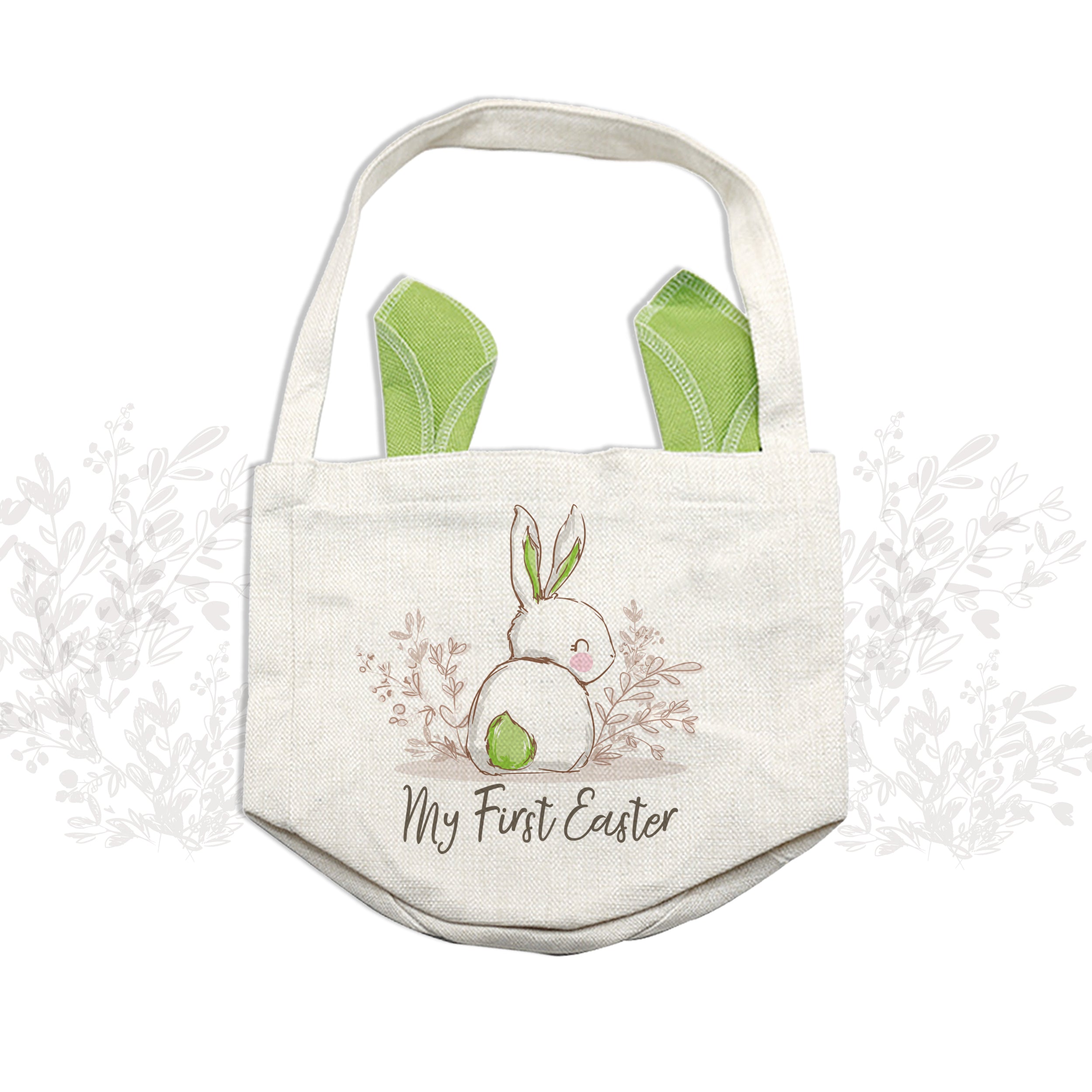 This "My First Easter" easter basket tote bag with bunny ears is perfect for little hands to hold and tote around while searching for eggs!
