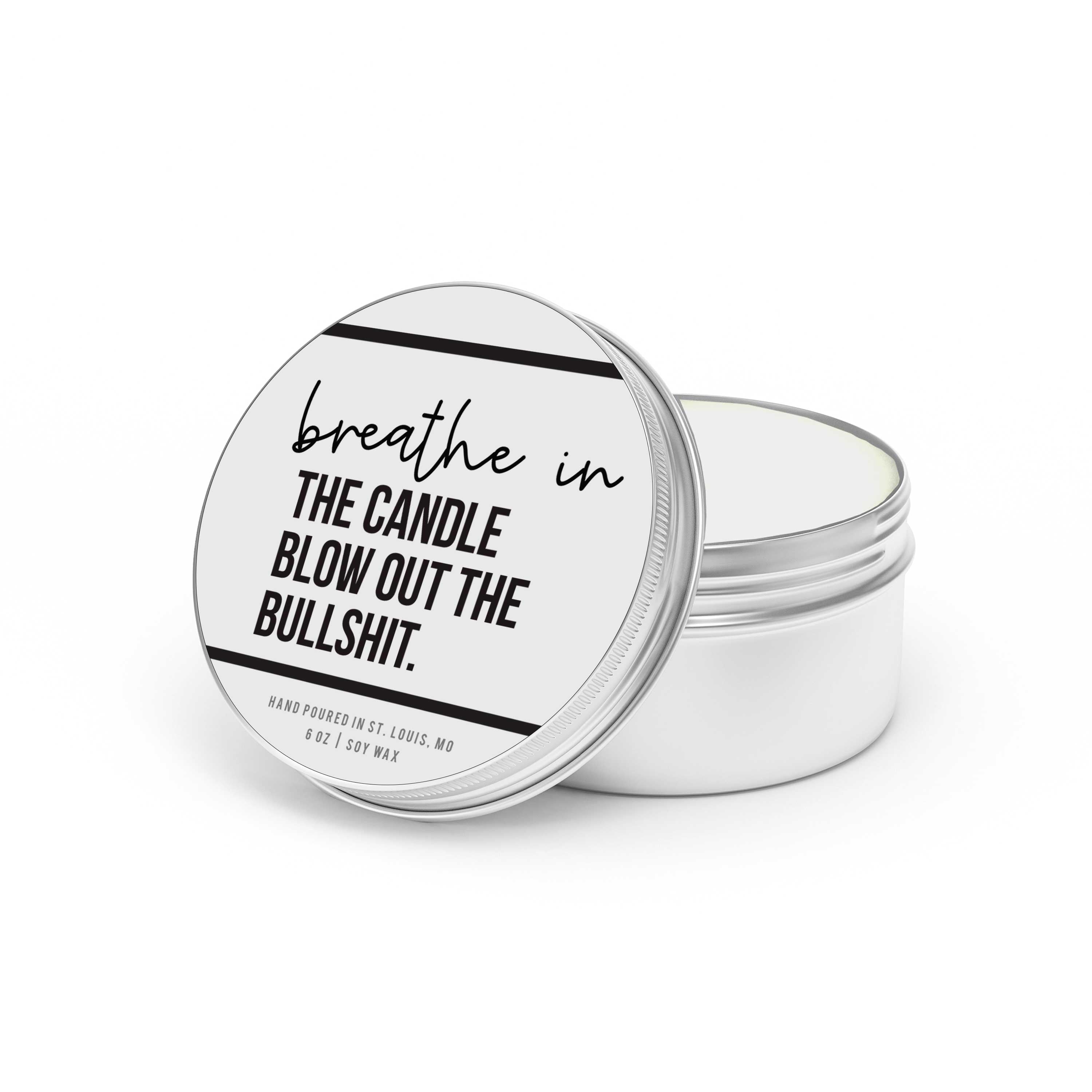 When life gets complicated and you need some inspiration this funny "breathe in the candle blow out the bullshit" soy wax candle is just what you need! Available in a variety of sizes in a jar or tin. Makes a great gift for family, friends, and co-workers, and a customer favorite, too!
