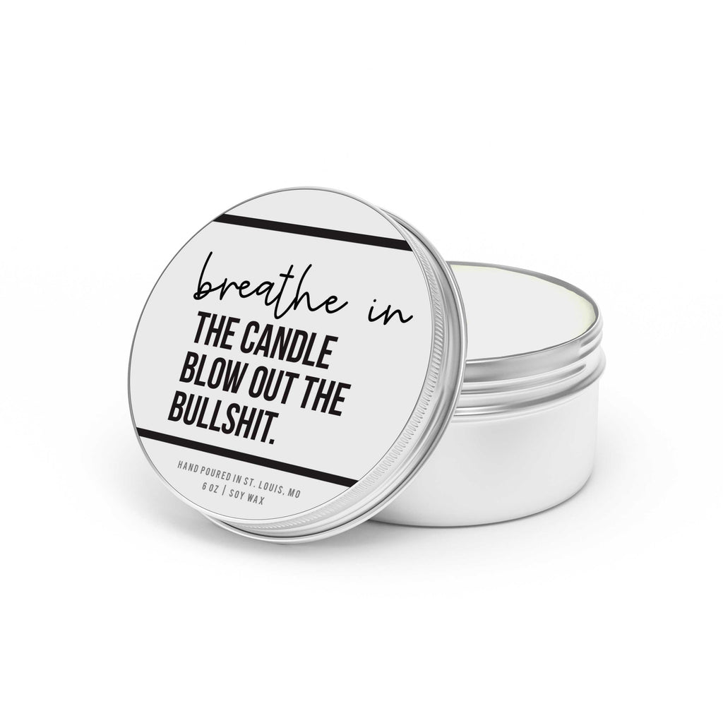 funny inspirational candle gift | candle gifts for self or friends or co-workers breathe in the candle blow out the bullshit | soy wax candle