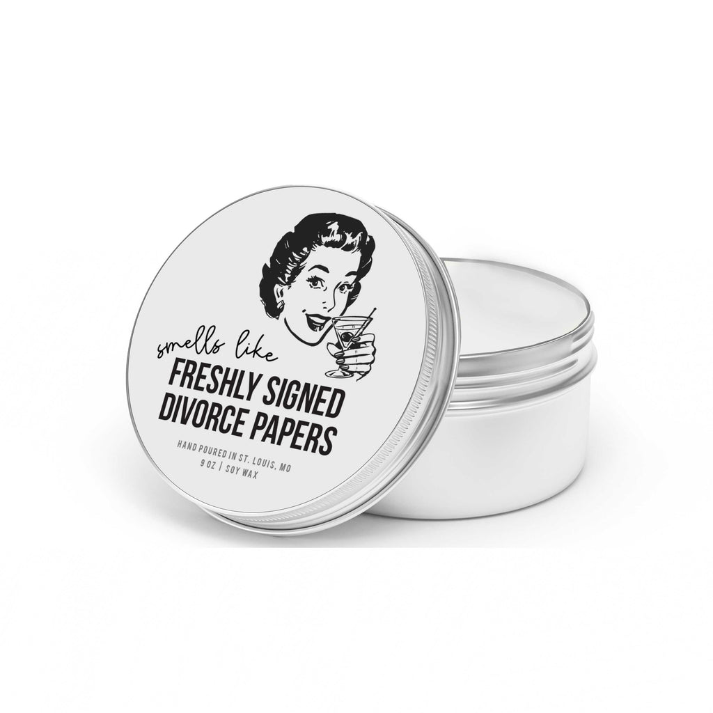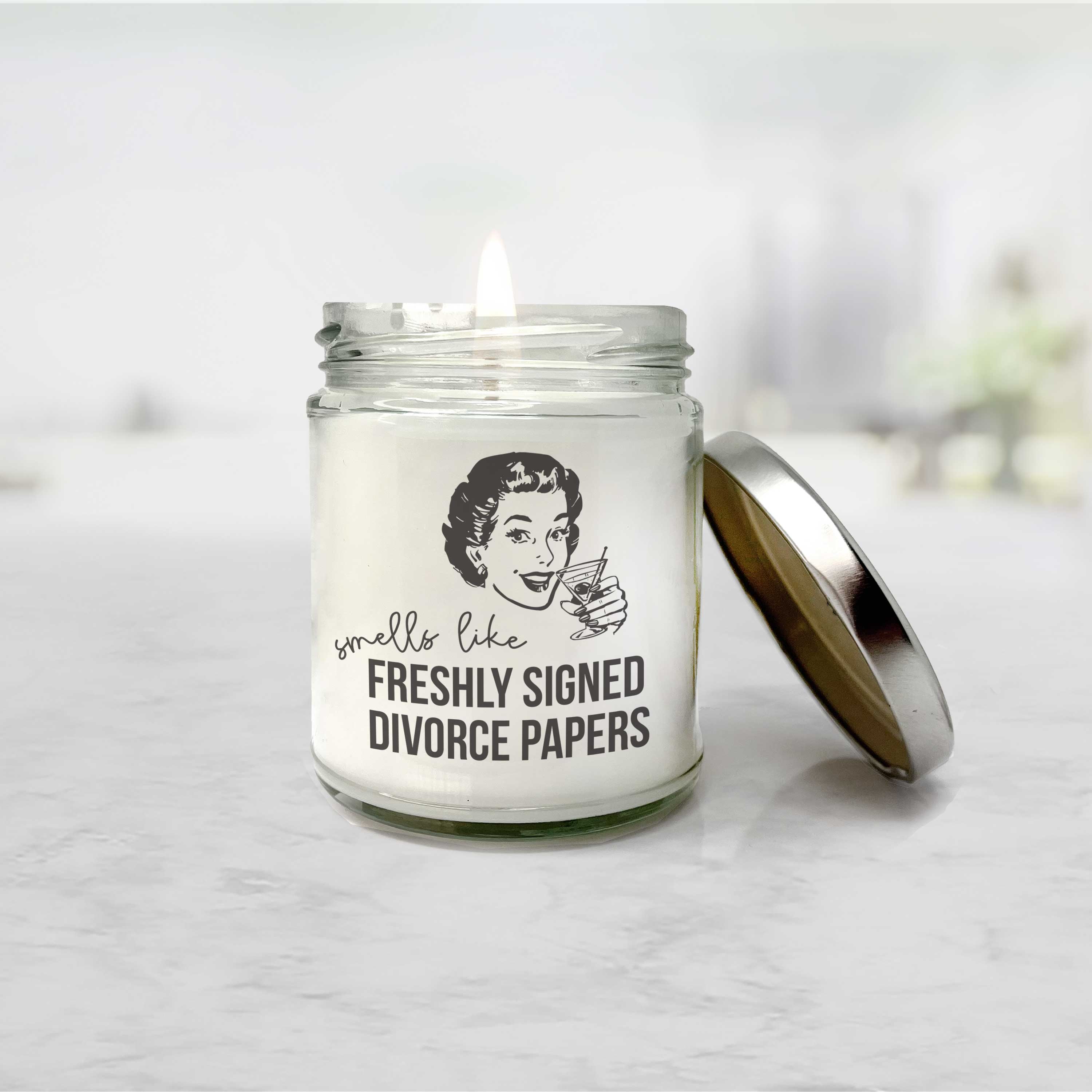 Are you or someone you know recently divorced? If so, this "smells like freshly signed divorce papers" soy wax candle is for you! Makes a great gift and a customer favorite, too!!