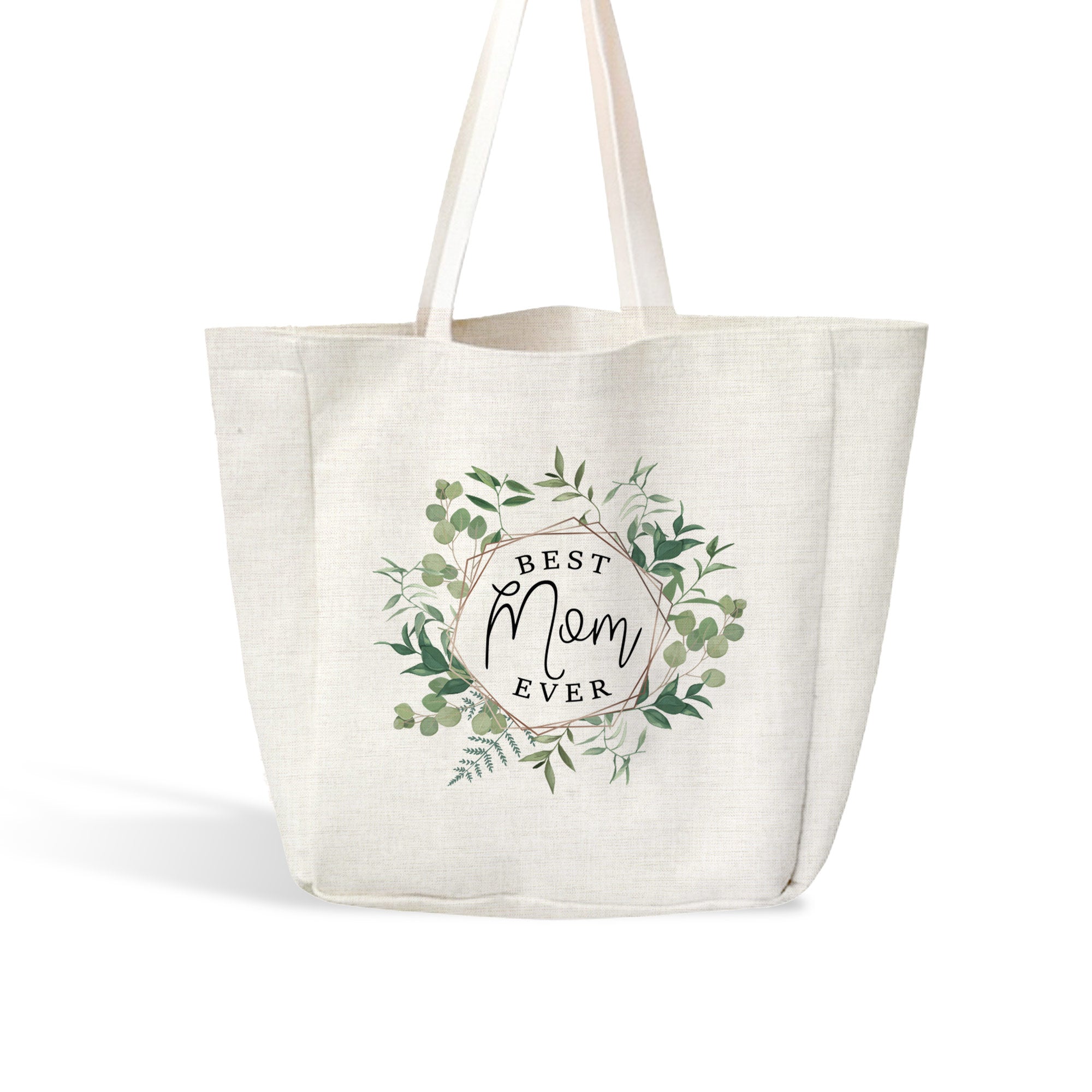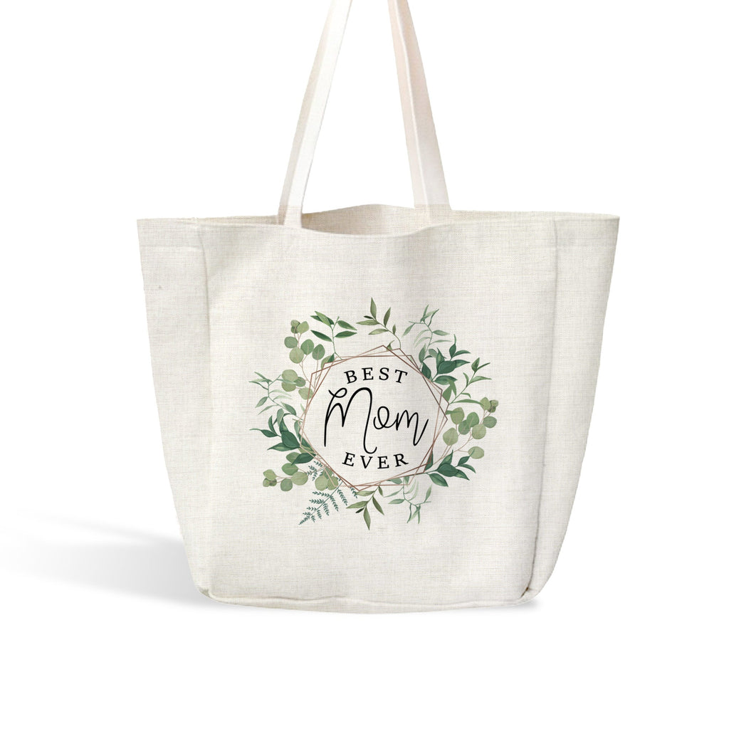 Mom tote bag | Best Mom Ever linen textured tote | greenery wreath perfect for mothers day or birthday gift