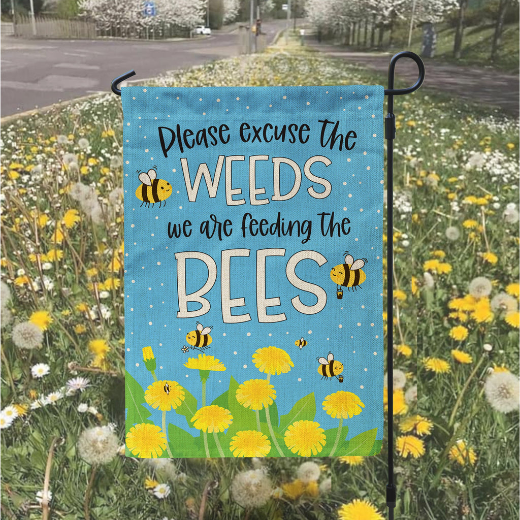 pardon the weeds bees garden flag | feeding the bees yard flag | save the bees garden flag