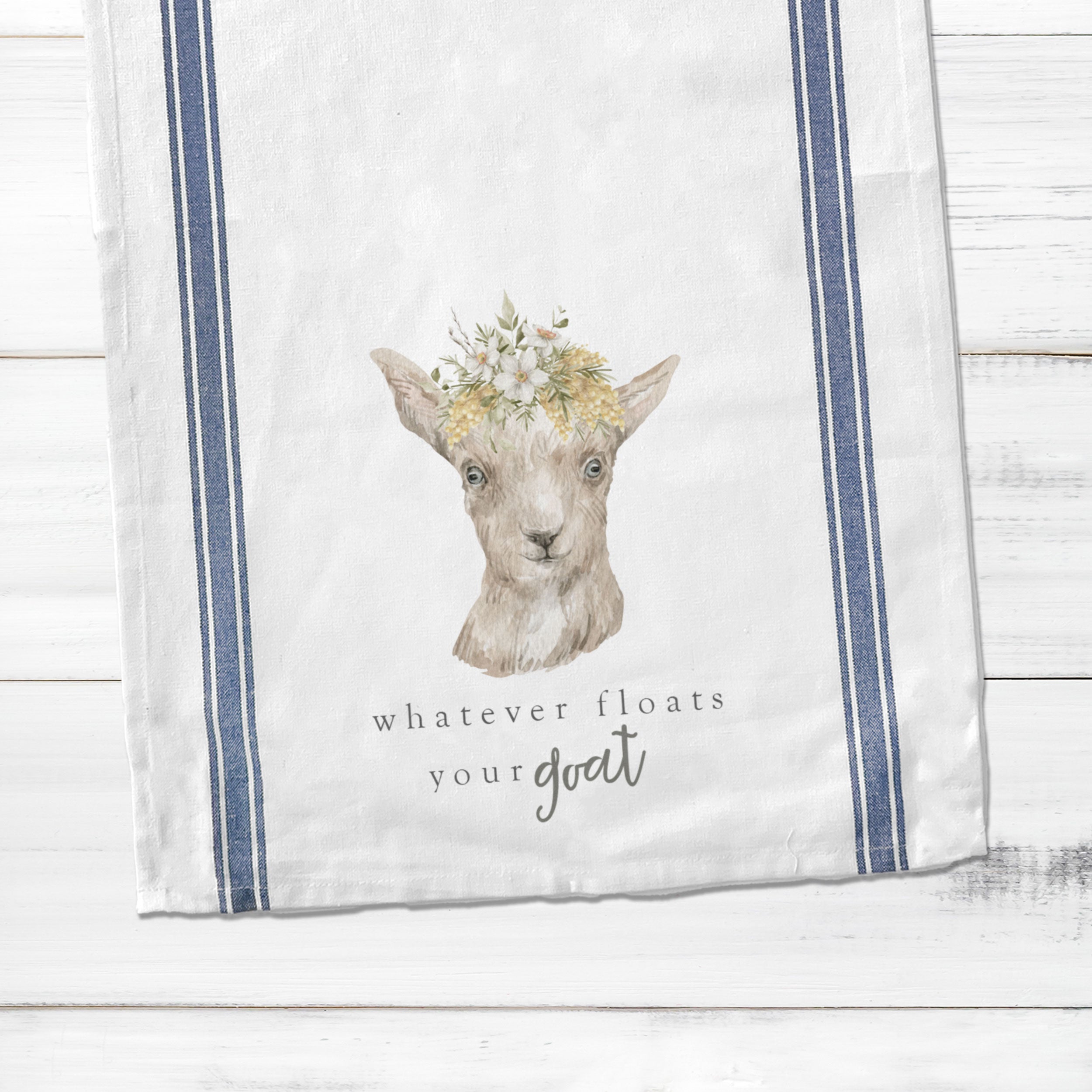Cotton striped Tea towel | spring tea towel | whatever floats your goat dish towel | funny goat tea towel