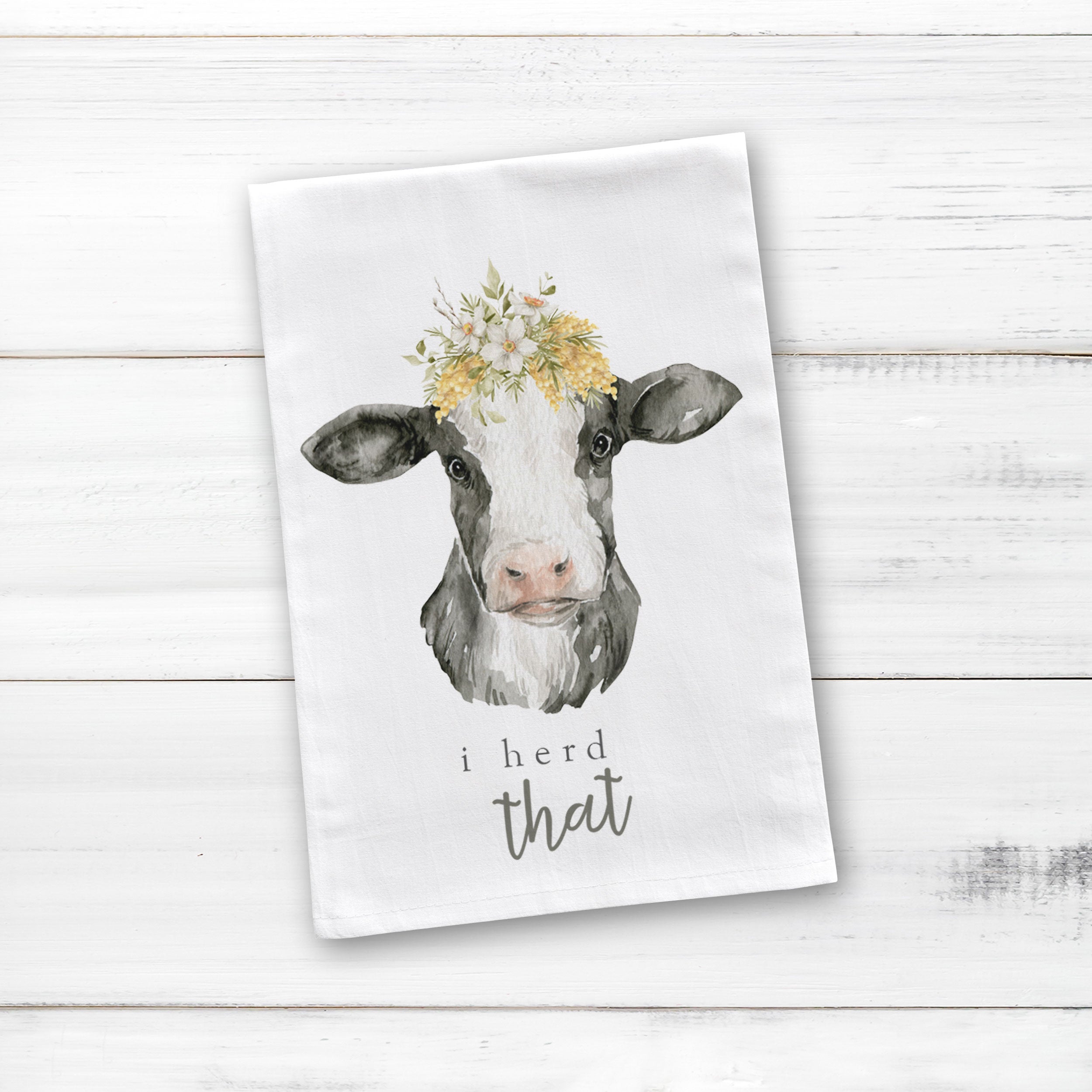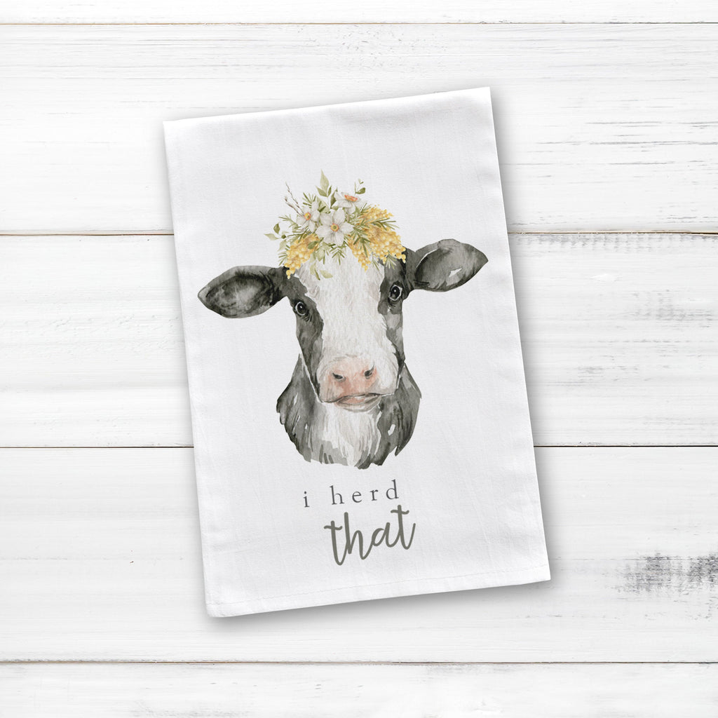 Tea towels are all the rage! This spring "i heard that" cotton tea towel with a cow makes a great hostess / party gift and fun to display all year round!