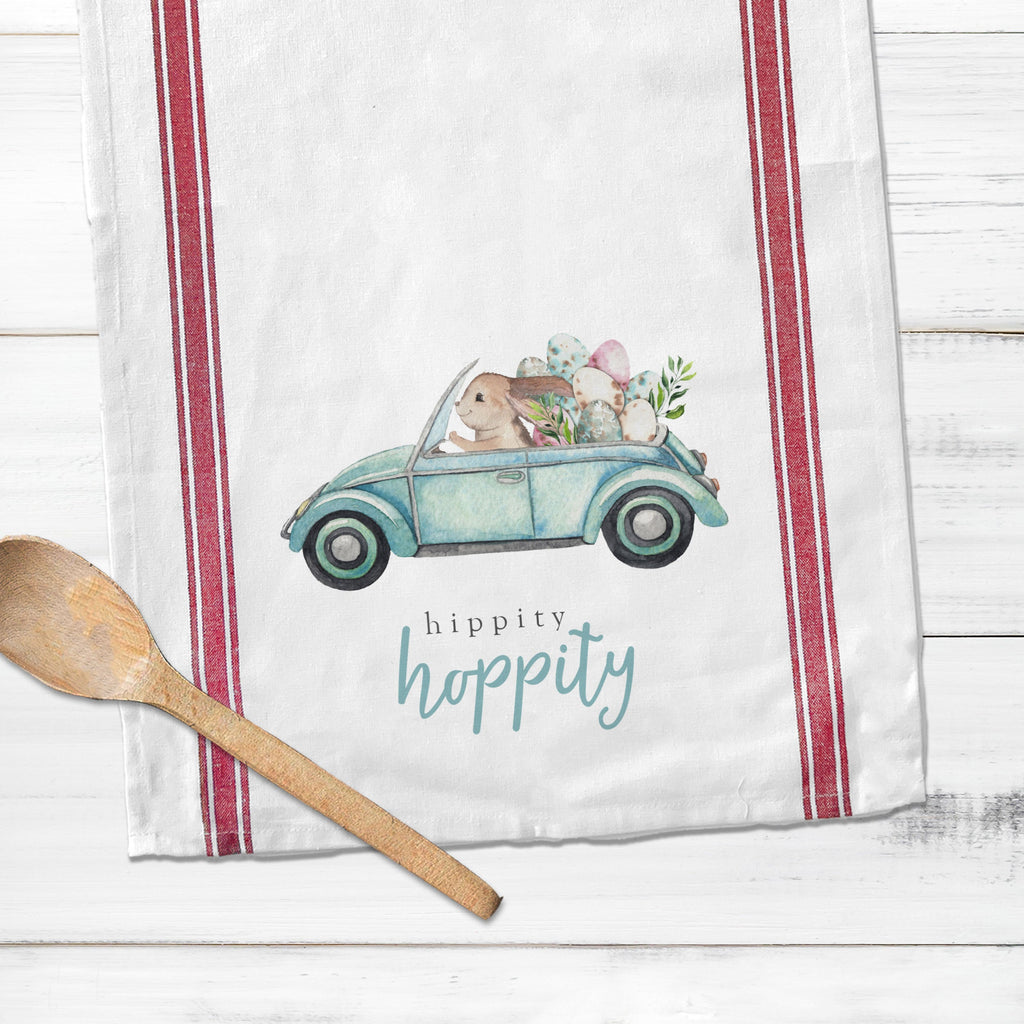 Easter cotton tea towel | hippity hoppity easter kitchen dish towel | decorative easter striped decorative spring tea towel