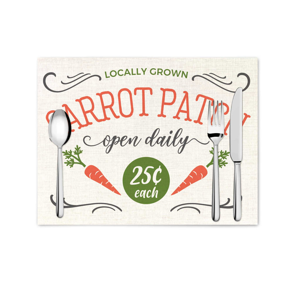 Make your Easter dinner table extra special this year! This adorable linen placemat for your locally grown carrot patch design.
