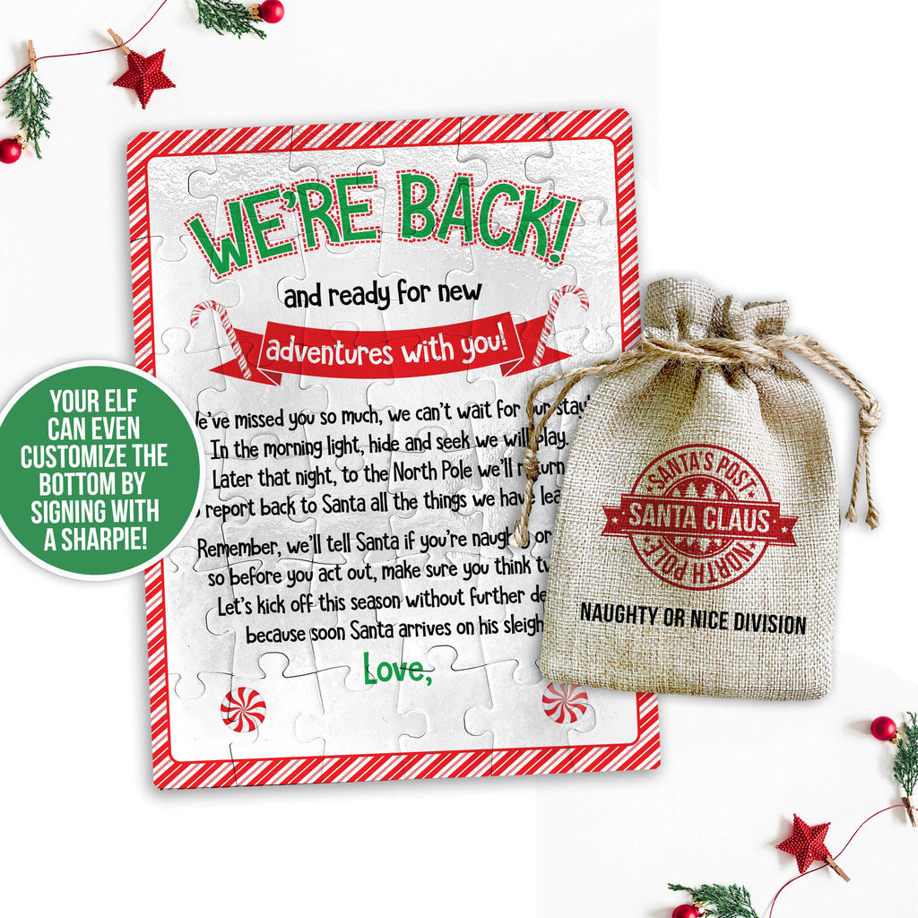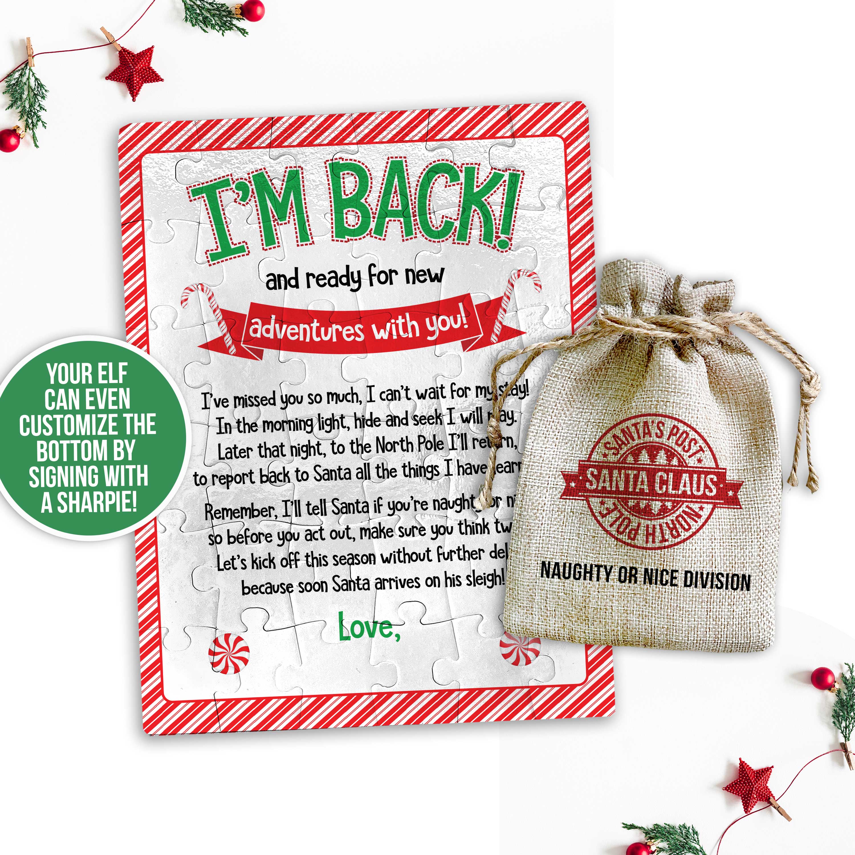 So adorable! Your customers will love this puzzle that they can personalized themselves with their own elf's name! Makes a super cute and fun way for your elf to arrive this year! Ships with a fun burlap bag for arriving as well.