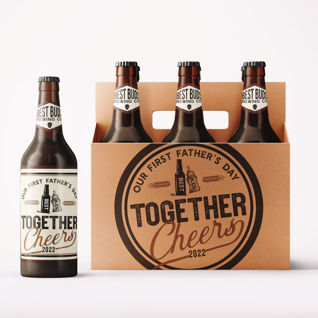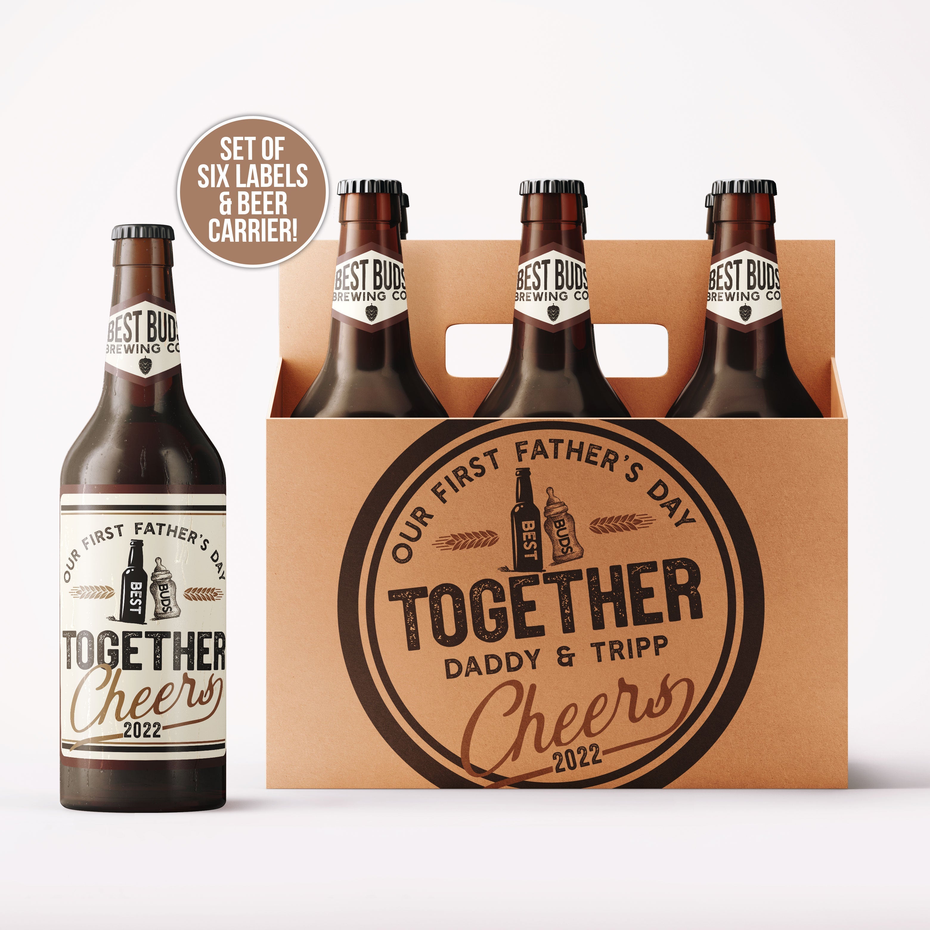 Such a fun and unique gift idea! This "Our First Father's Day Together Cheers" printed kraft bottle holder with optional beer labels makes the best Father's Day gift! We will ship you a custom printed kraft 6-pack bottle holder and the optional 6 labels (top piece and main piece of bottle) and then you simply add Dad's favorite six pack. Just add any personalization details (i.e., title if other than Daddy, baby's name, etc.) to the "notes" when ordering.