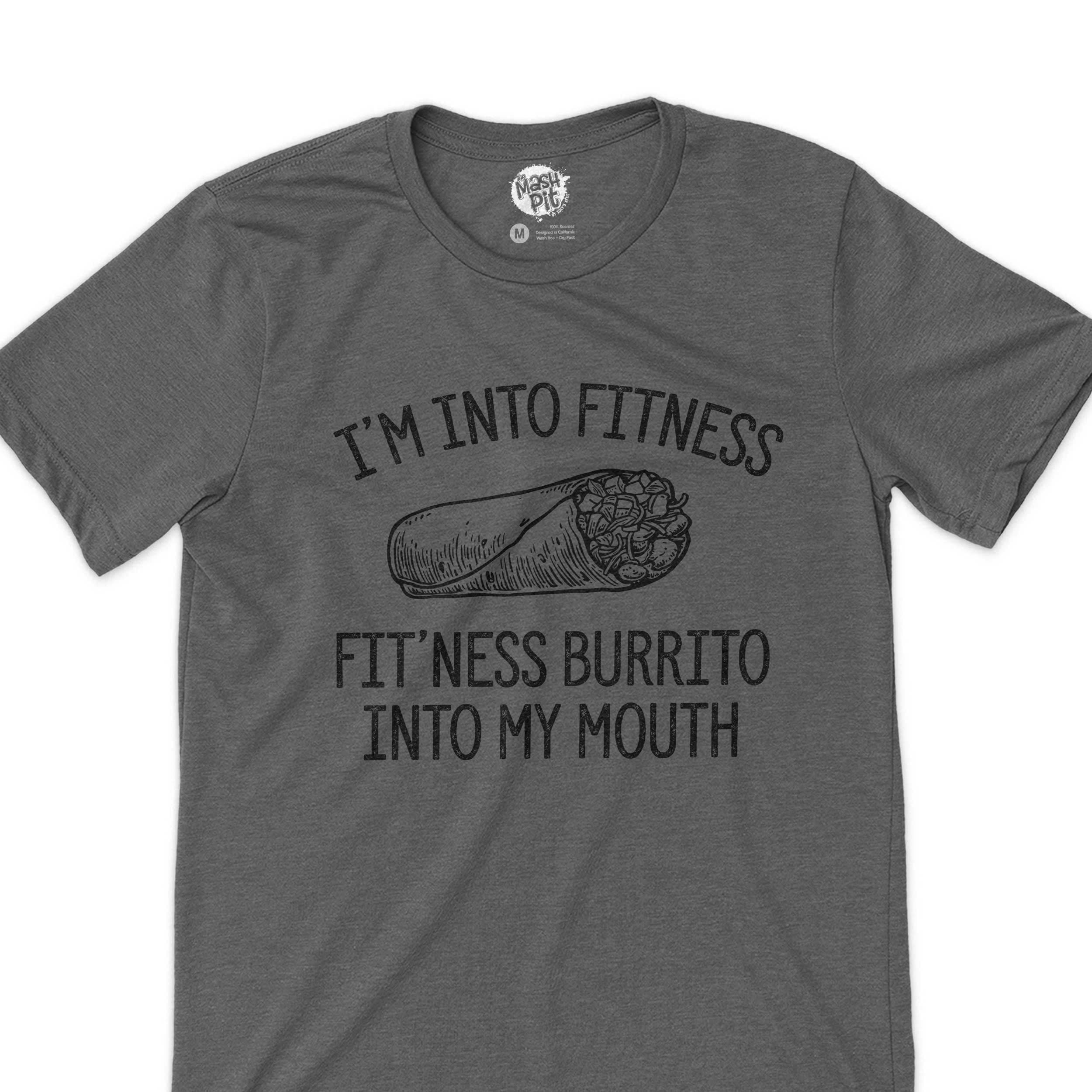 Introducing our hilarious and mouth-watering "I'm Into Fitness, Fit'ness Burrito in My Mouth" tee, a must-have for all the food-loving fitness enthusiasts out there! This witty and playful shirt combines your passion for fitness with your undeniable love for scrumptious burritos (or any other favorite food of your choice).