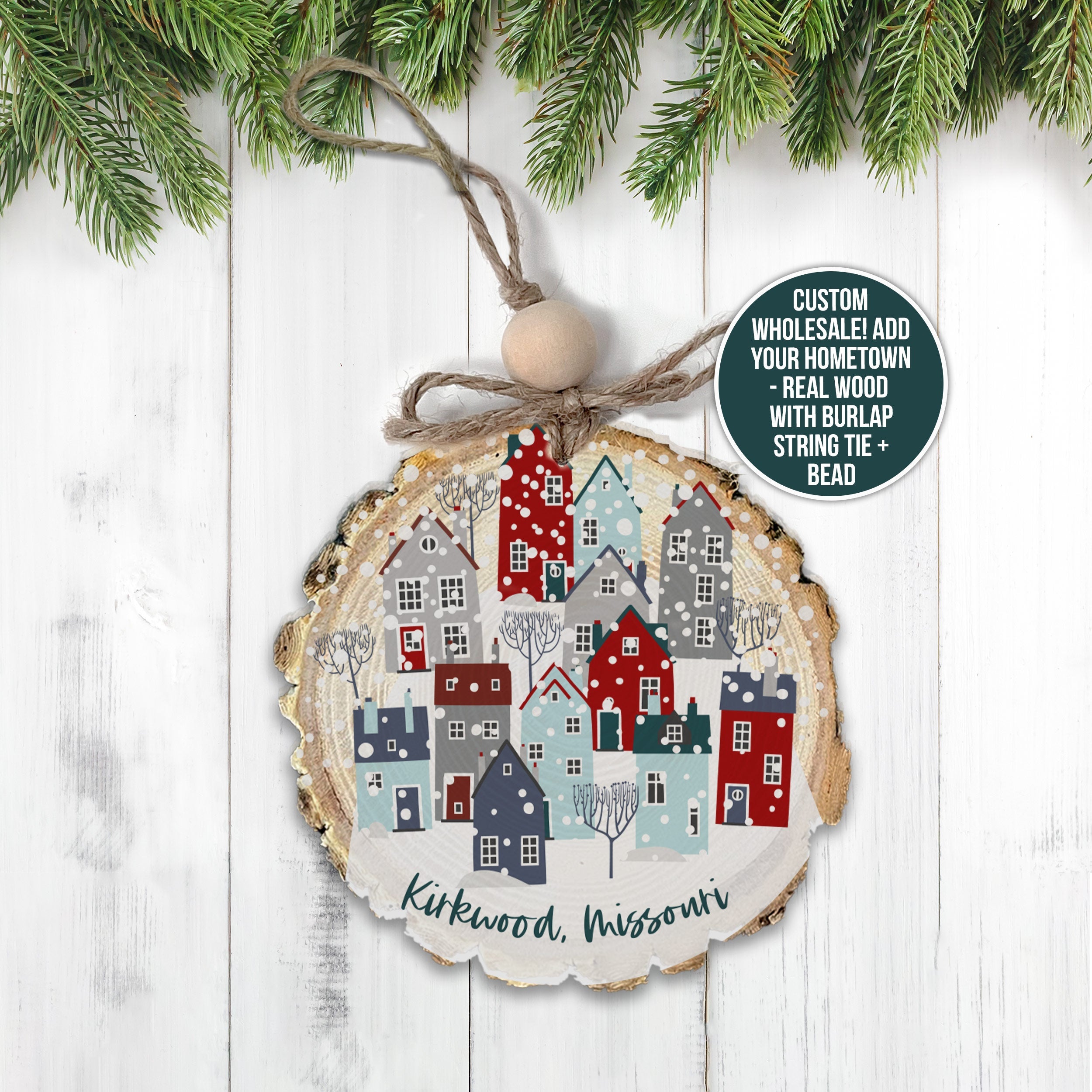 This beautiful all-natural handmade ornament (looks like it was hand painted!) is custom made with your own town/zipcode/saying, etc. Makes for a great local gift!