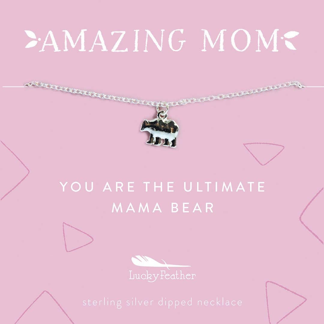 Lucky Feather - Mom Necklace - You are the Ultimate Mama Bear - Silver - Bear