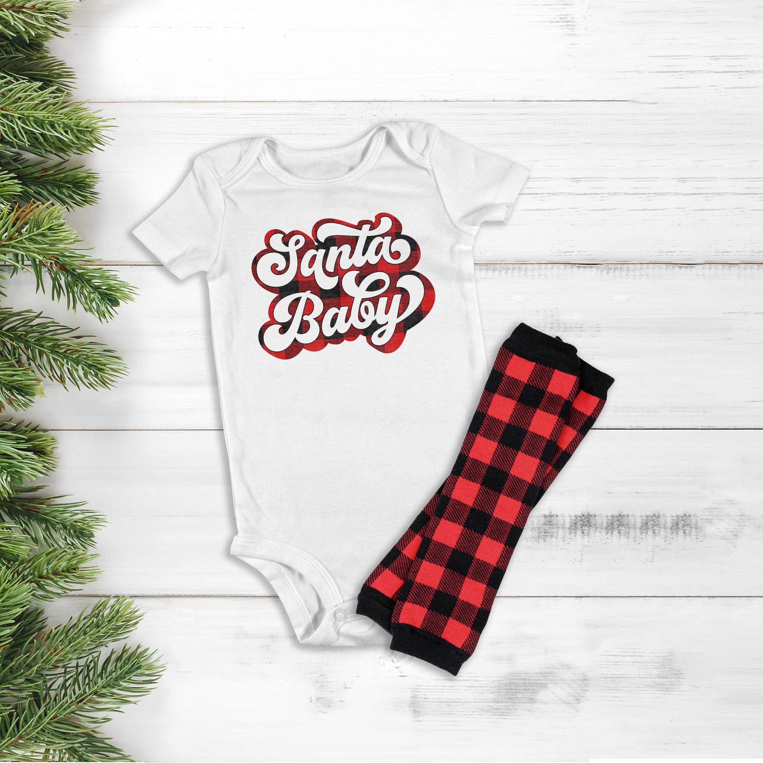 This adorable red/black buffalo plaid "Santa Baby" bodysuit and legwarmer combo will be a big hit this holiday season! Comes pre-packaged based on sizes and ready for gift giving!