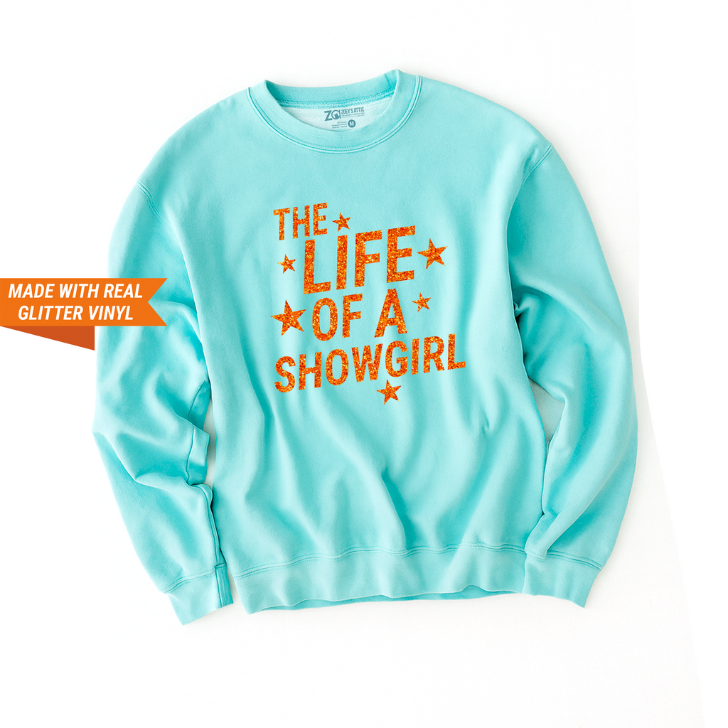 The Life of a Showgirl Graphic Tee | Comfort Colors The Life of a Showgirl Sweatshirt | Glitter Vinyl Custom ShirtGraphic Tee with REAL Glitter — Gift For Her