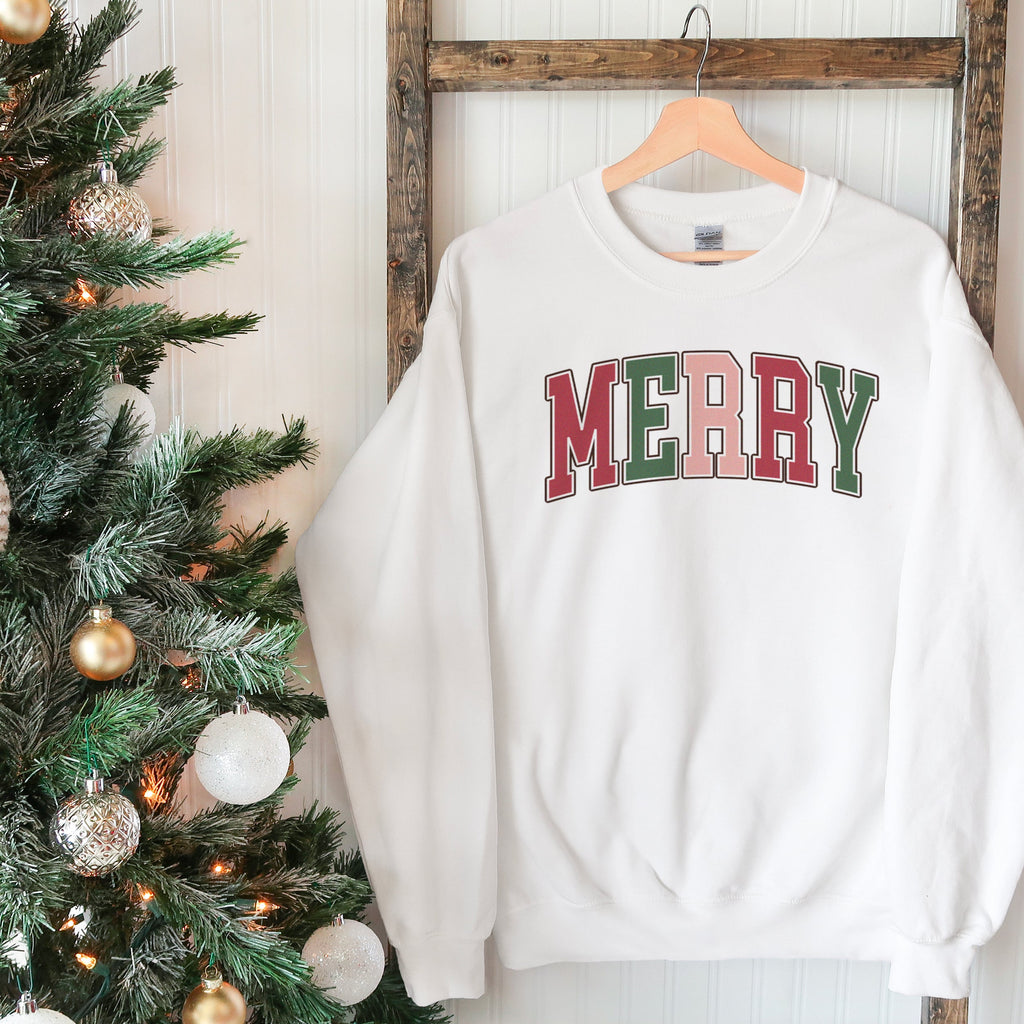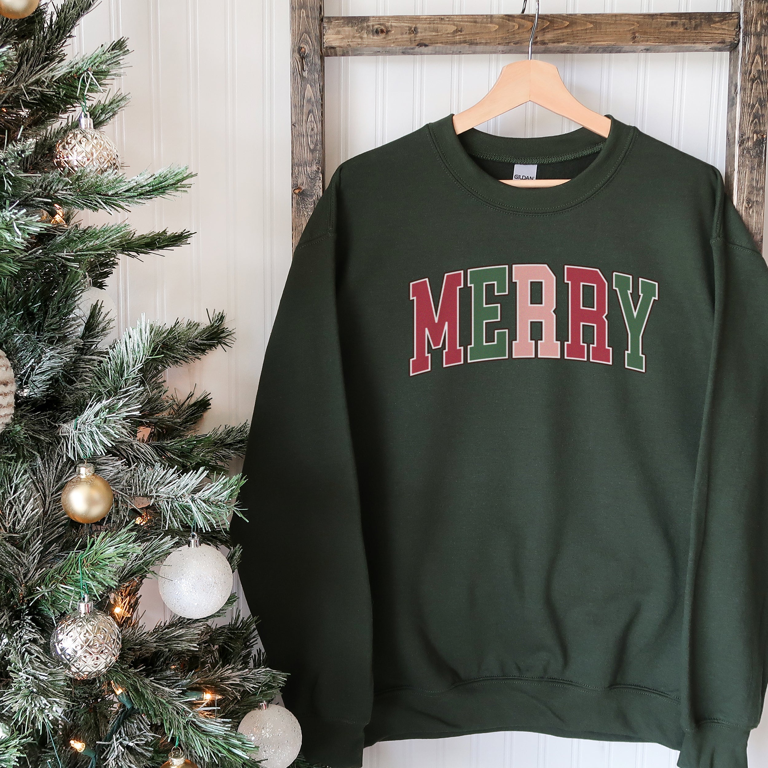 Adorable "Merry" sweatshirt will keep you feeling festive all season long, even while shlepping from store to store or marathon wrapping sessions!