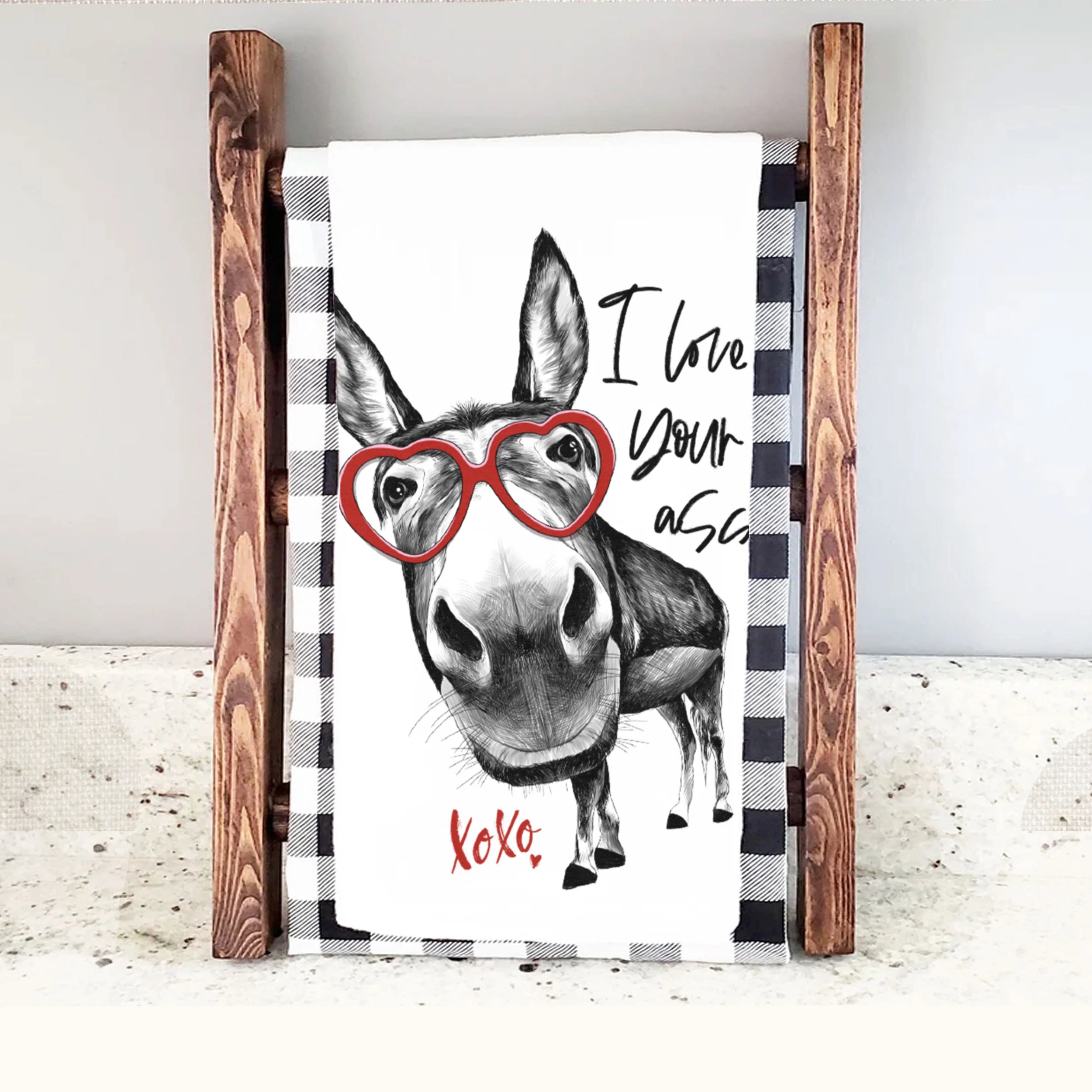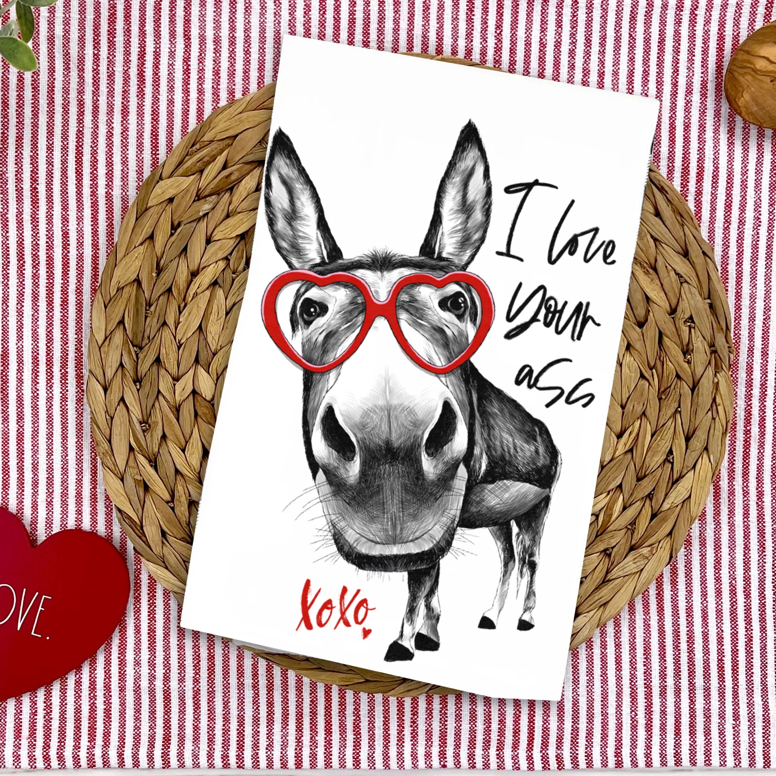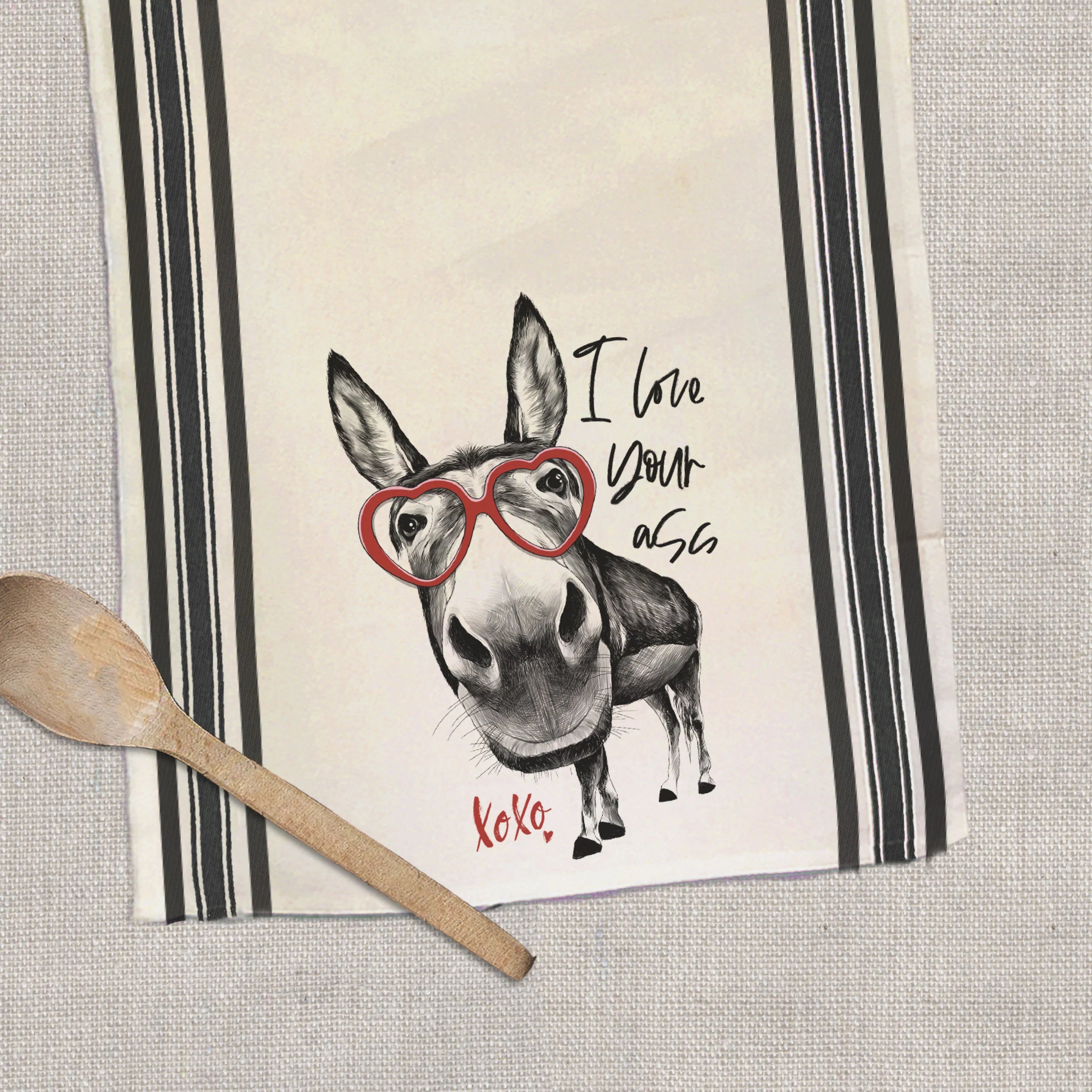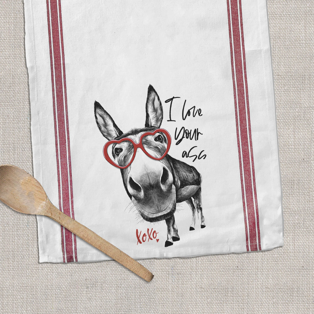 Tea towels are all the rage! This funny Valentine's Day "i love your ass" cotton tea towel with hearts is a fun way to celebrate Valentine's Day.