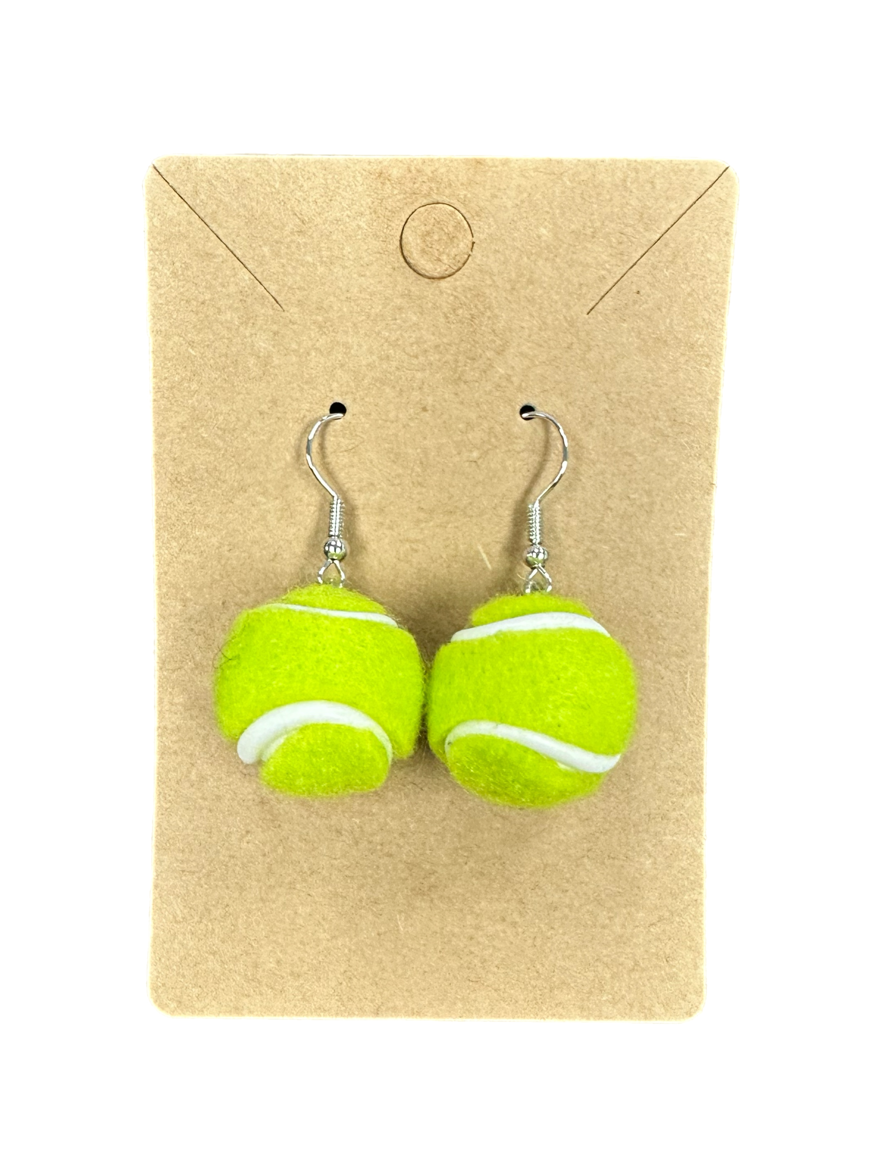 These oversized Tennis Ball Dangle Earrings are a grand slam for any sporty fashionista. Lightweight yet bold, they’re the perfect accessory to show your love for the game—whether you're headed to a match or just love a good statement piece. Made to mimic the fuzzy texture of a real tennis ball, these earrings are playful, eye-catching, and guaranteed to ace your outfit.